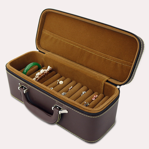 2022 toptan büyük kapasiteli kahverengi deri takı yüzük organizatör saklama kutusu takı